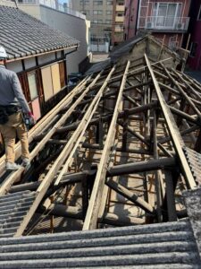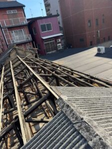 今回雨漏りがきっかけでのご依頼でしたが、アスベストが含まれている屋根材だったということで葺き替えていきます。