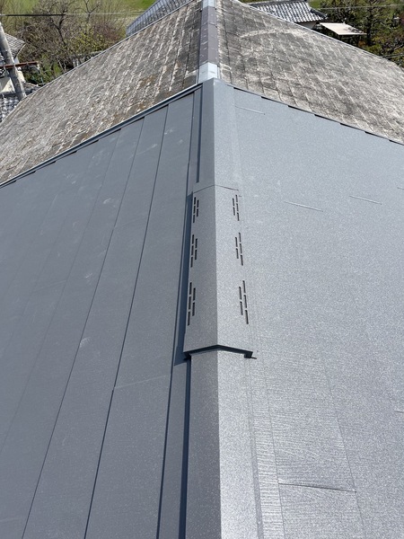 しかし下地まで傷んでいる様子はないため、葺き替えではなくカバー工法をご提案いたしました。