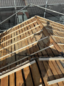 こちらの下地はバラ板という下地材で、築40年より前の屋根で見られます。