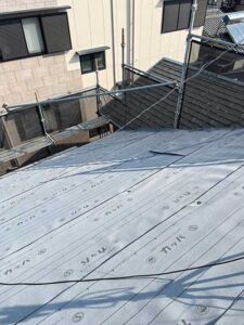 スレート屋根のカバー工法ではルーフィングを釘で固定するので、今回のように築30年で既存屋根が劣化している場合、釘穴をふさぐシール性や防水性の高さは重要なポイントとなります。