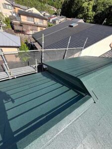 エコルーフで通気性を確保し、また野地板を垂木でかさ上げした上で張り、そして換気棟も取り付けたことで、湿気にも強い屋根になりました。