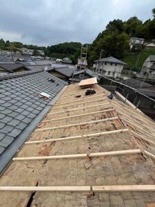 京都市北区にて築50年の雨漏りしている土葺き屋根をスーパーガルテクトに葺き替え