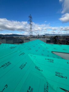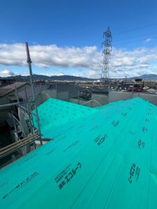 こちらがルーフィング(防水シート)を敷いた様子です。