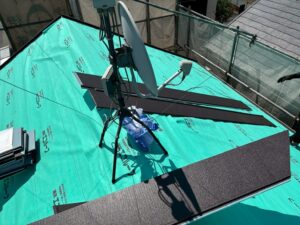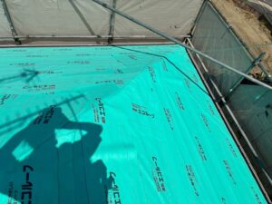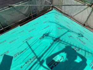 防水シートを敷くことで屋根材のつなぎ目から入った水分を屋根内部の木材まで浸透させることなく、外部へ排出することができます。