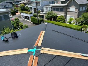 今回は既存の屋根をそのままに、上から新しい屋根材を被せるカバー工法にて修理を行います。
